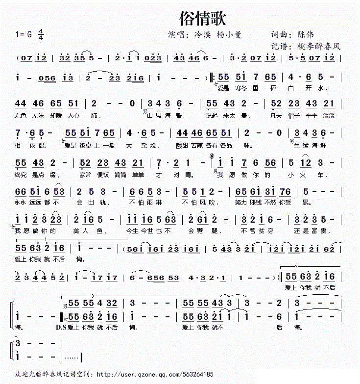 - [歌谱] 我爱你胜过你爱我 冷漠 杨小曼