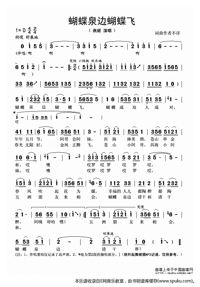 - [歌谱] 蝴蝶泉边