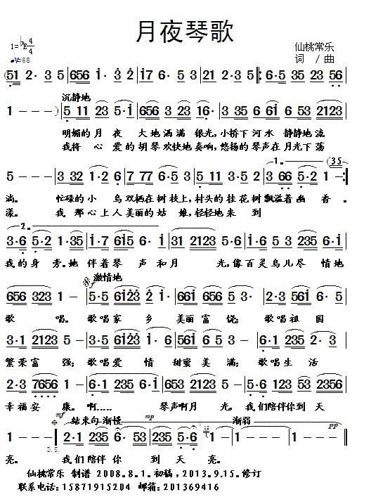 - [歌谱] 月夜琴歌【新版】