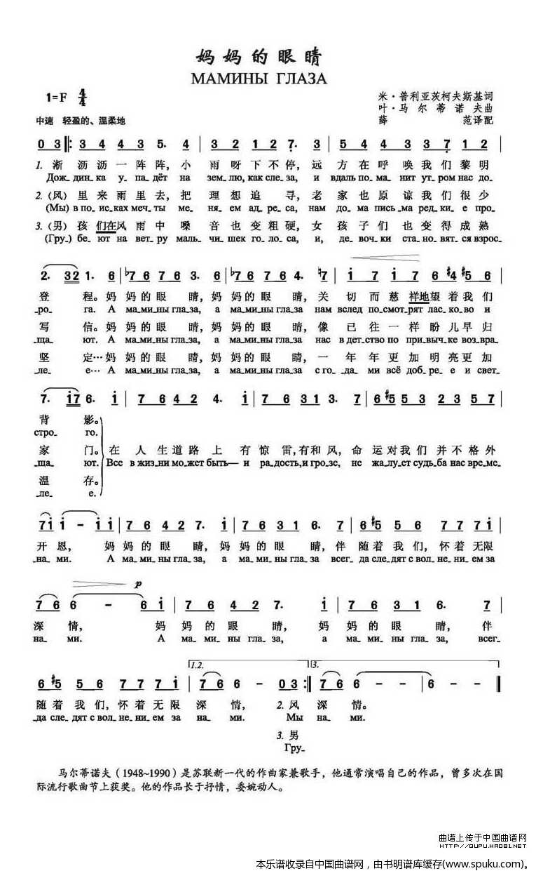 - [歌谱] 妈妈的眼睛 前苏联