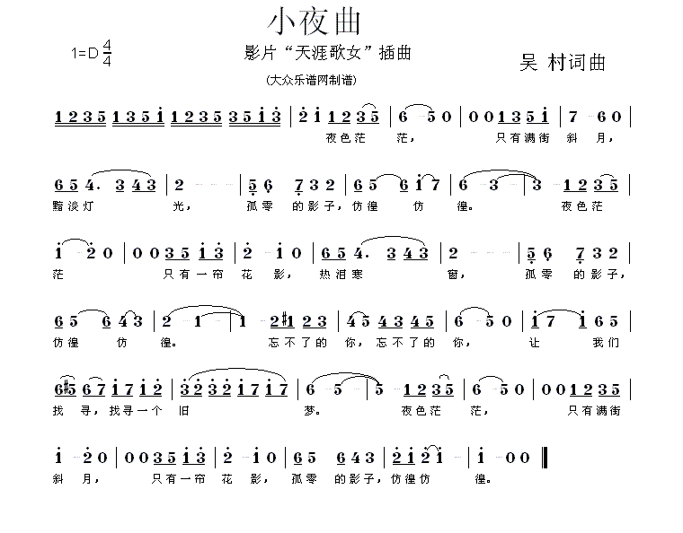 秋的怀念 影片 天涯歌女 插曲 彩谱