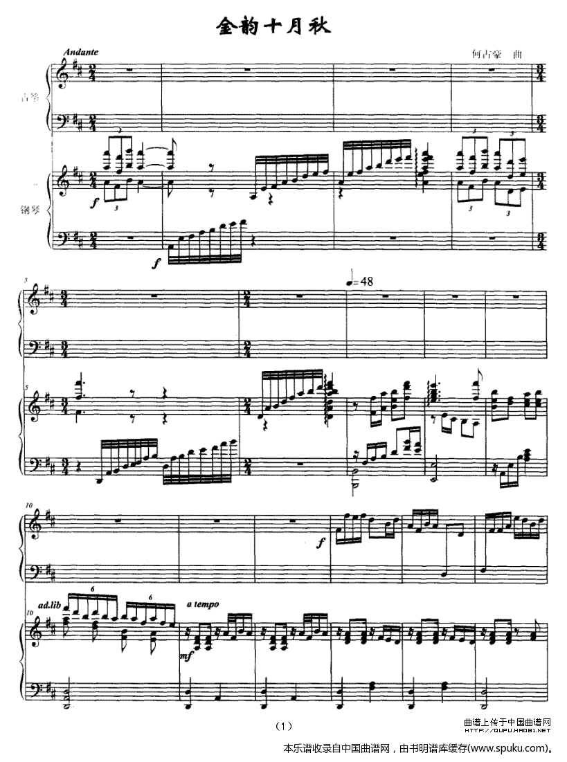 - [钢琴谱,古筝谱] 金韵十月秋 古筝 钢琴