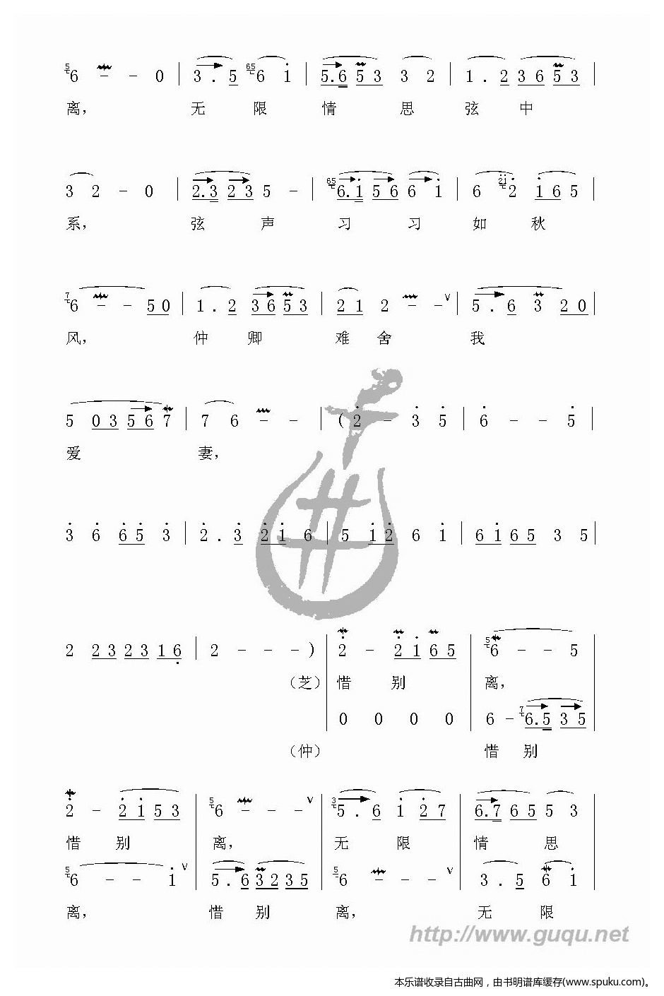 - [歌谱] 惜别离 孔雀东南飞 别离 焦仲卿 刘兰芝对唱