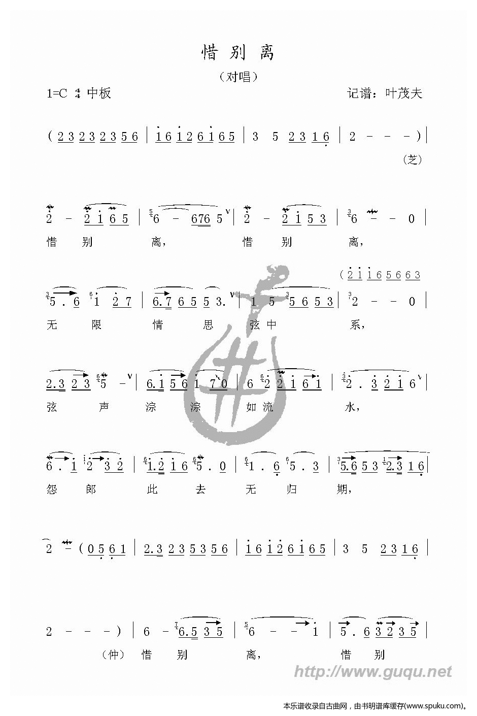 - [歌谱] 惜别离