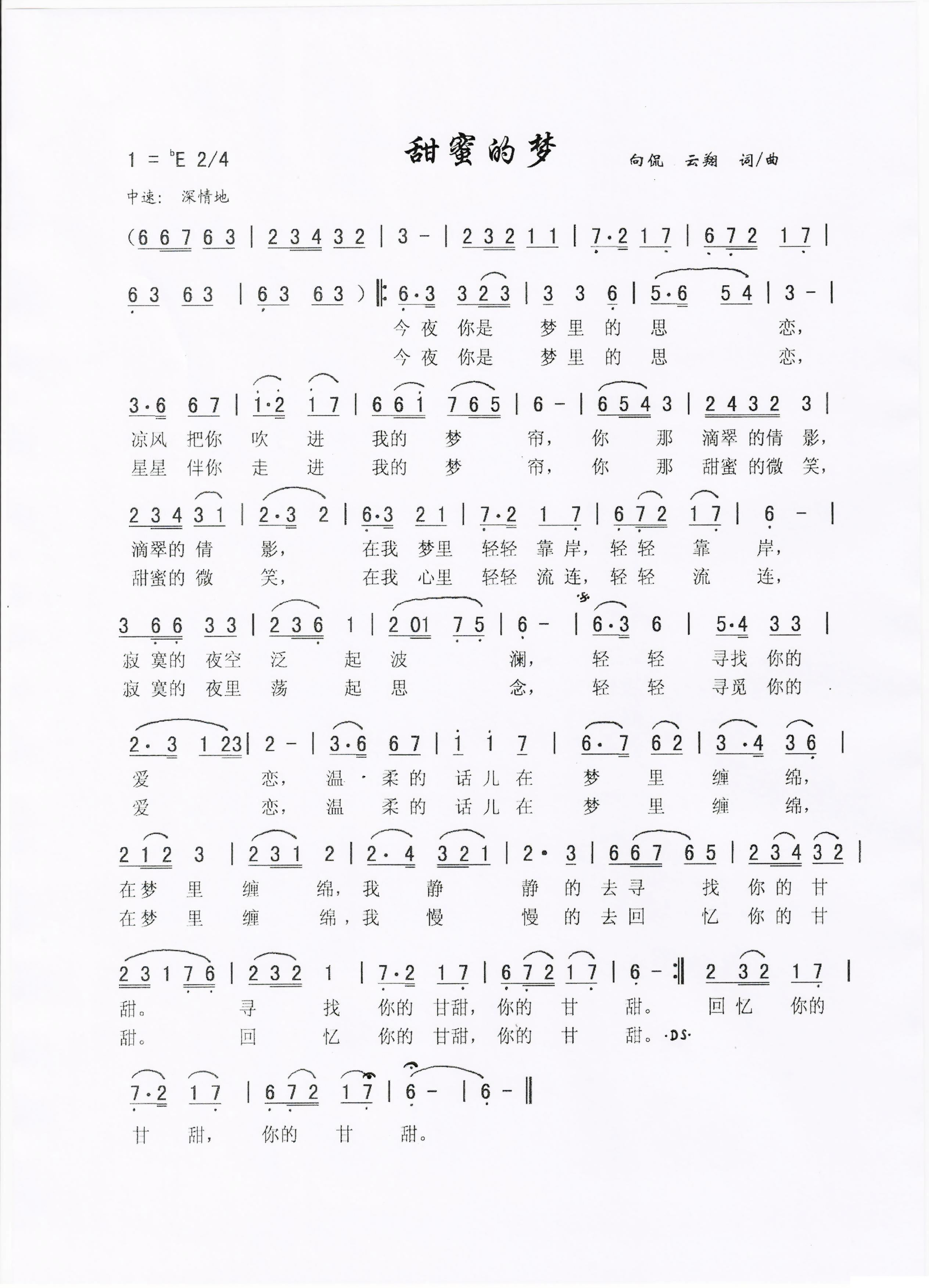 - [歌谱] 甜蜜的梦 彩谱
