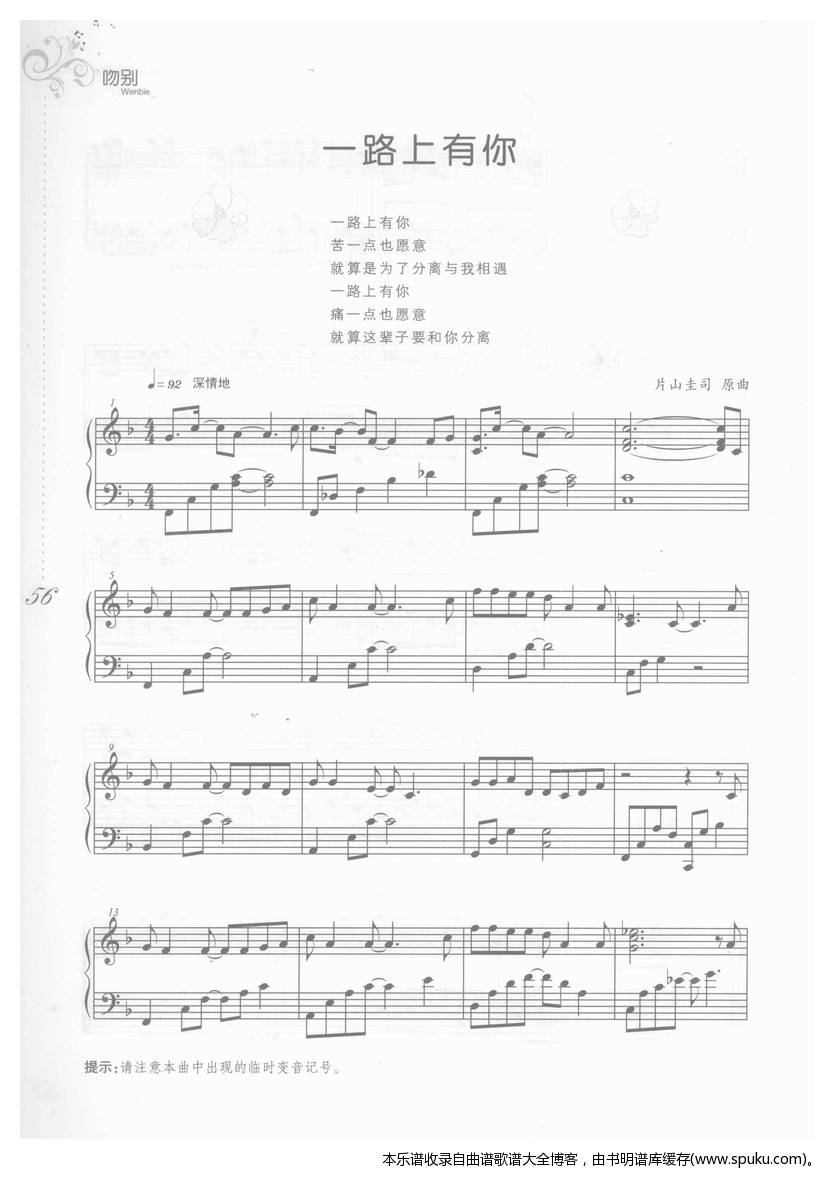 - [歌谱] 一路上有你