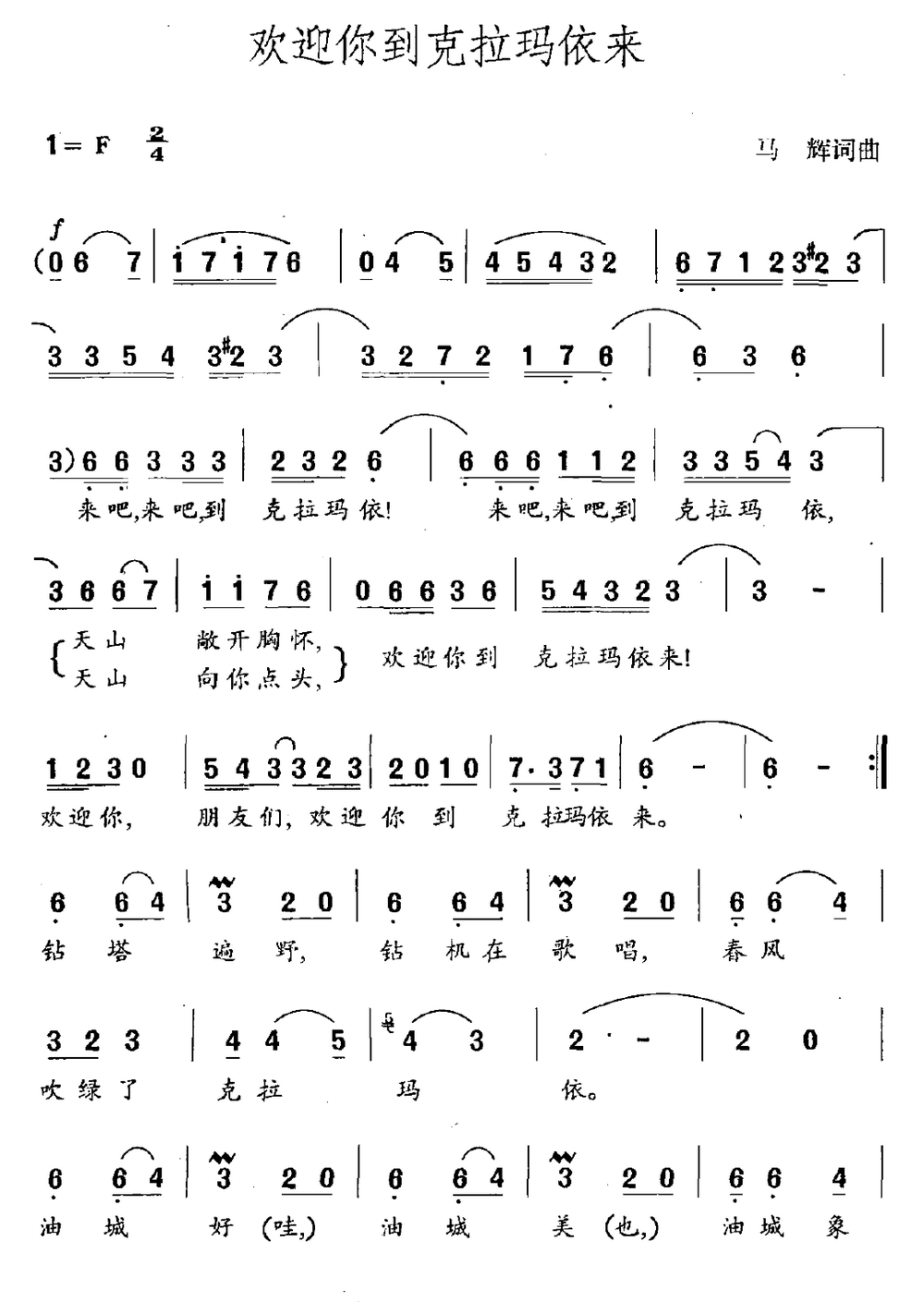 > 欢迎你到克拉玛依来