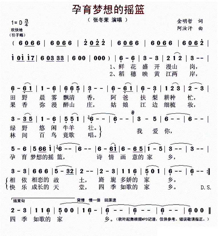 - [歌谱] 幸福的摇篮