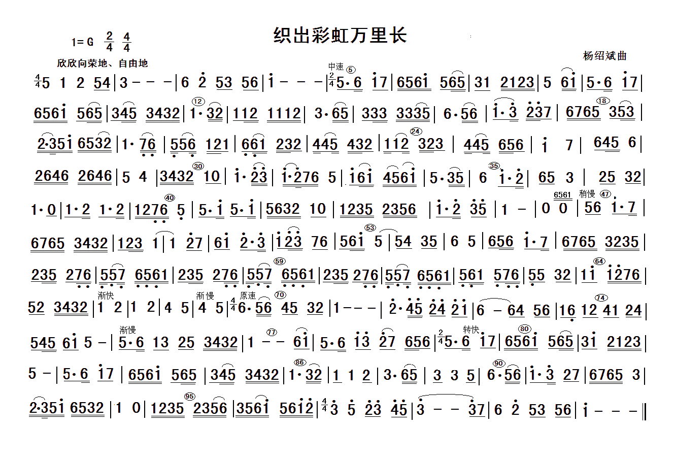 > 织岀彩虹万里长 民乐合奏主旋律谱