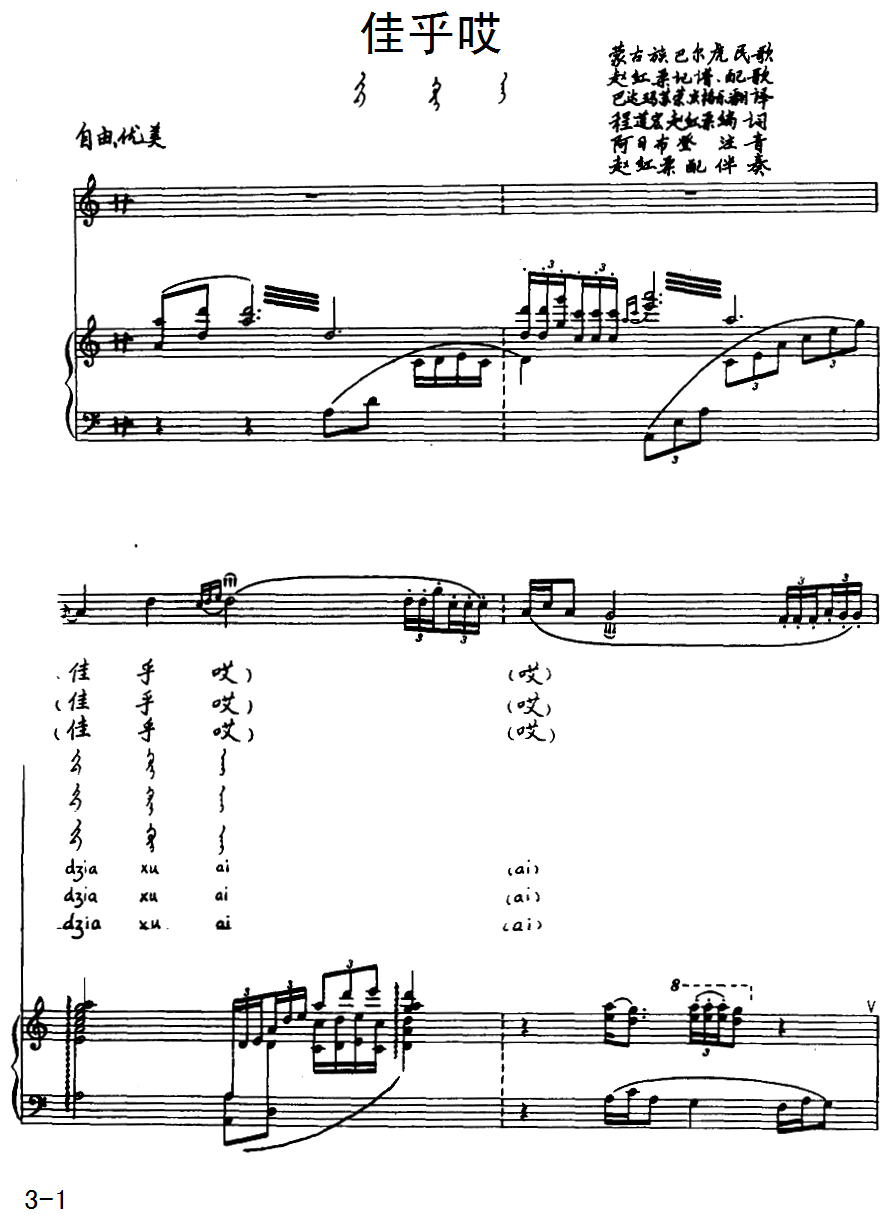 > 佳乎哎 蒙古族巴尔虎民歌 汉蒙文对照