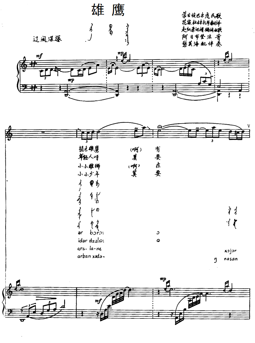 雄鹰 蒙古族巴尔虎民歌 汉蒙文对照