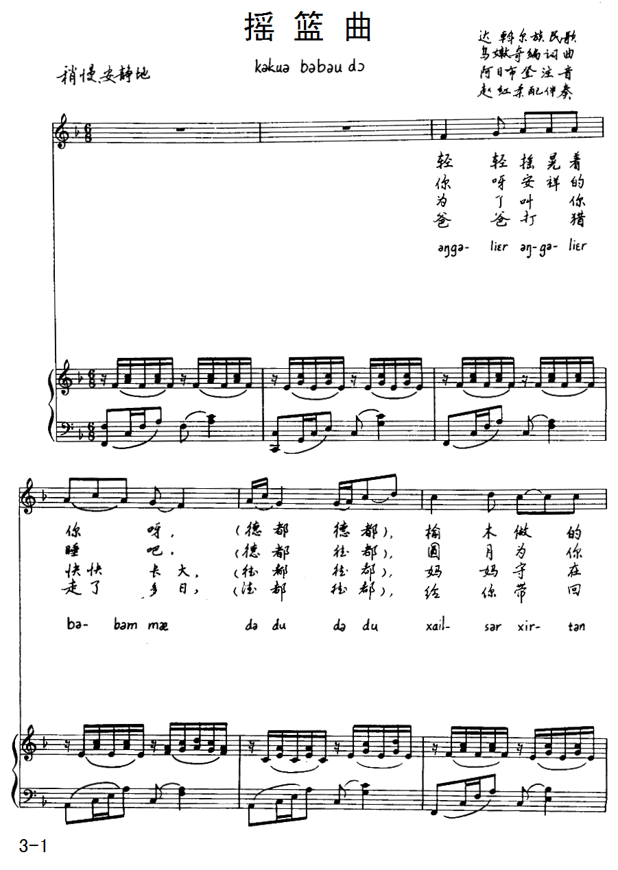 > 摇篮曲 达斡尔族民歌 注音版
