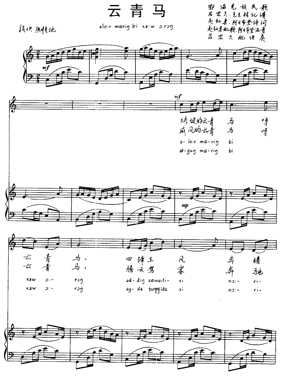 > 云青马 鄂温克族民歌 注音版