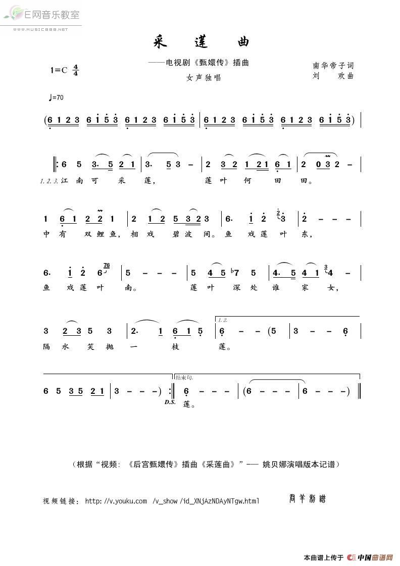 > 采莲曲 姚贝娜 电视剧 甄嬛传 插曲