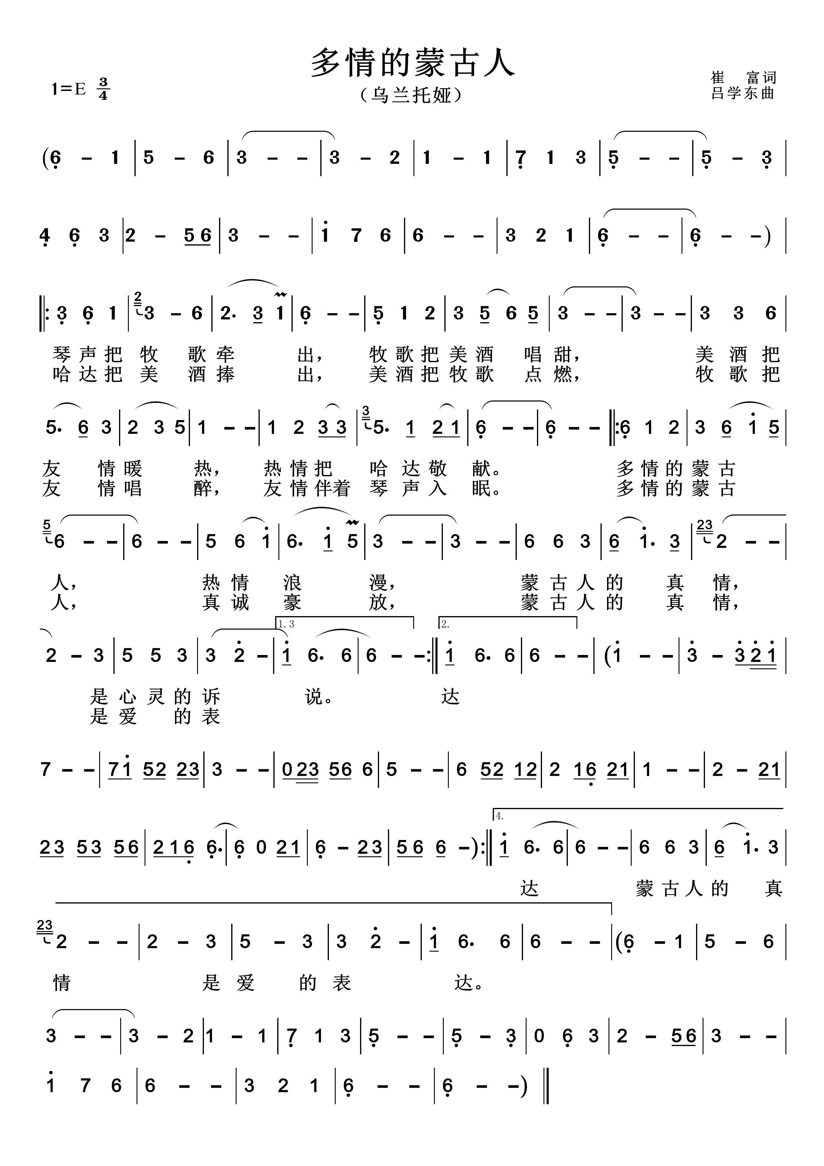 - [歌谱] 多情的蒙古人 乌兰托娅版