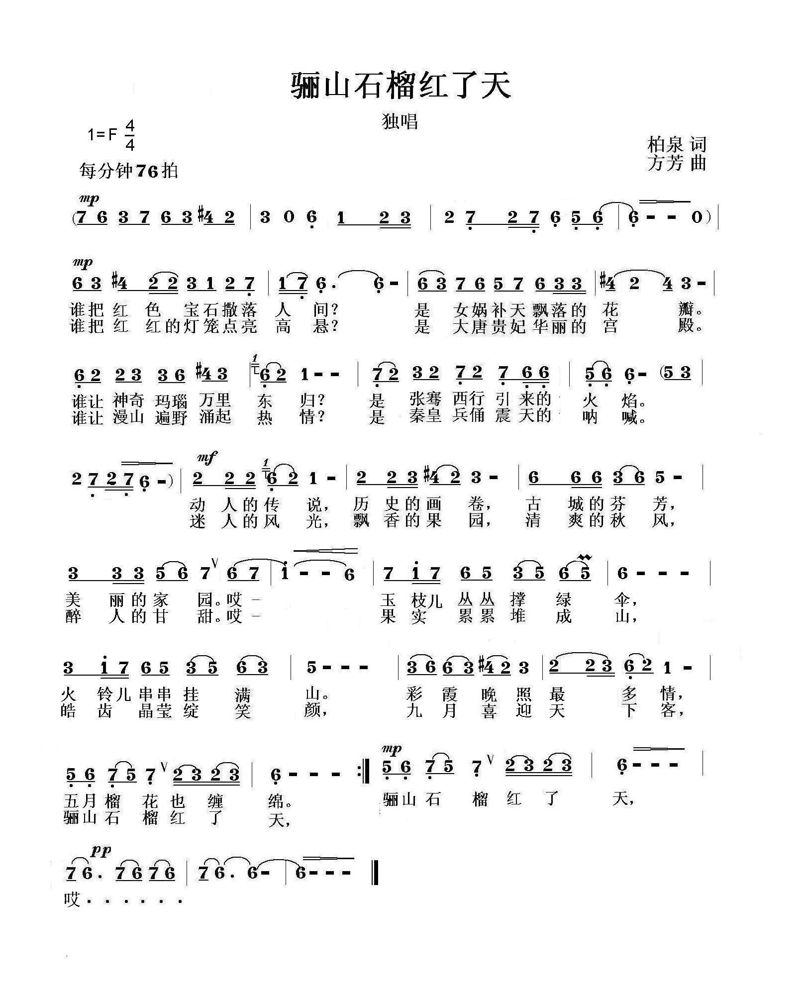 - [歌谱] 骊山石榴红满天