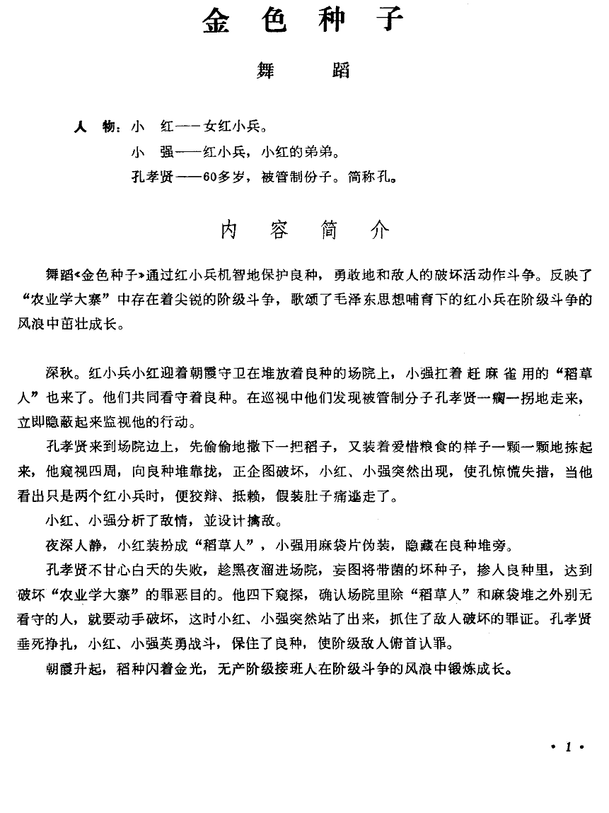 > 金色种子 小舞剧主旋律谱