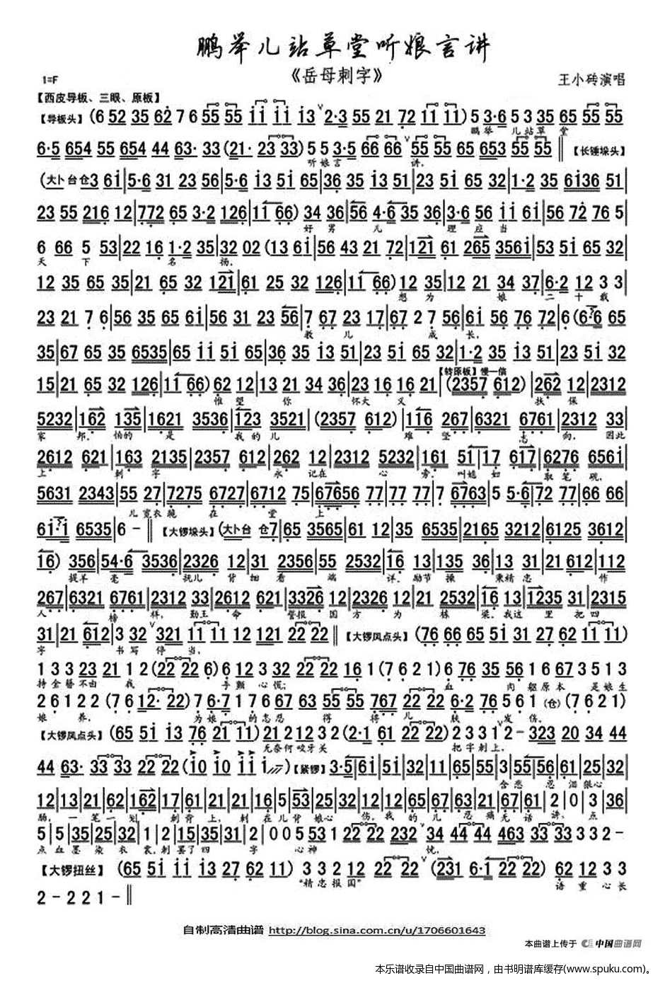 鹏举儿站草堂听娘言讲 岳母剌字 选段 琴谱