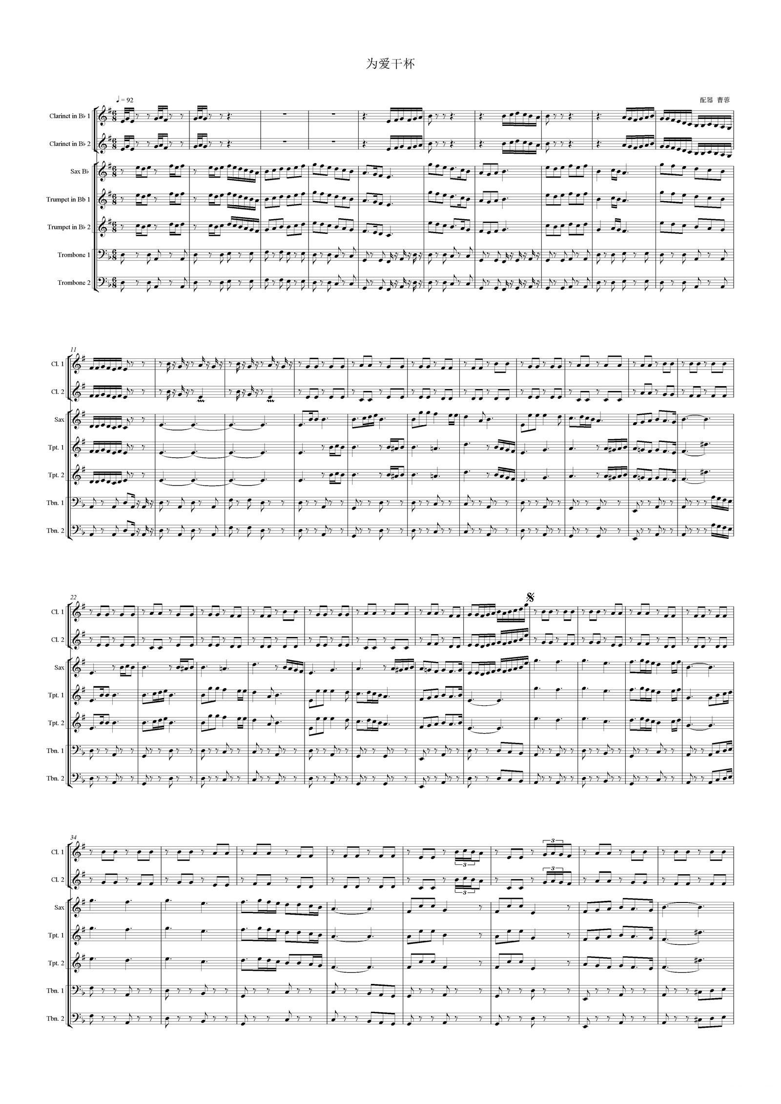 - [歌谱] 为爱干杯