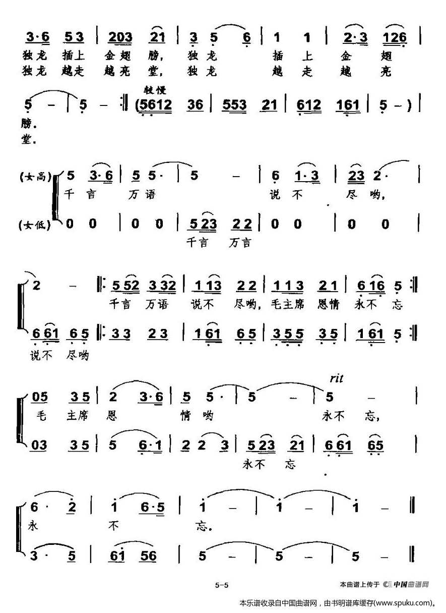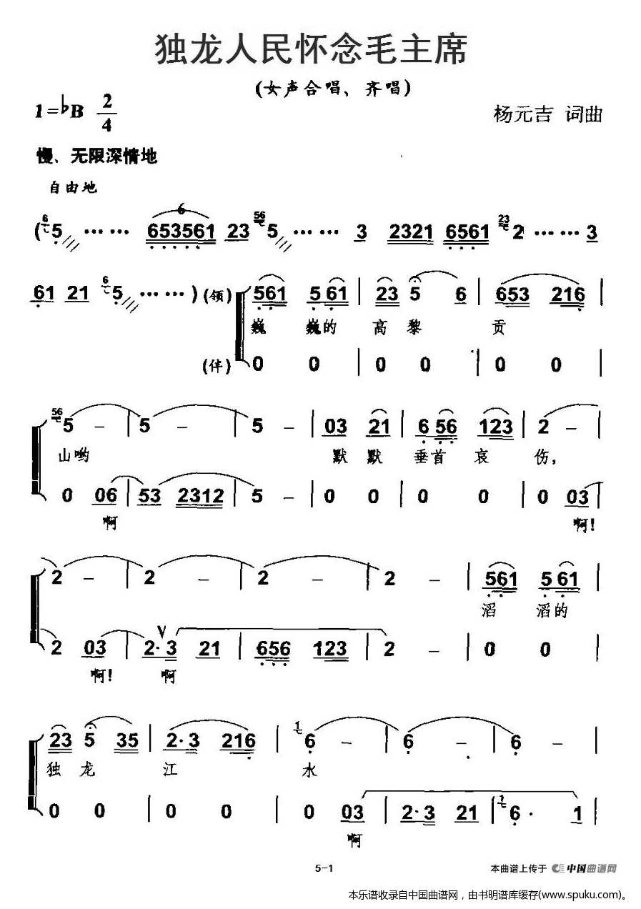 塔吉克人民怀念毛主席 独唱 钢伴谱