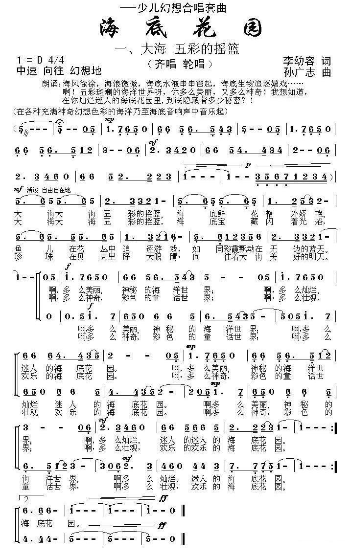 > 大海 五彩的摇篮 少儿幻想合唱套曲 海底花园 之一