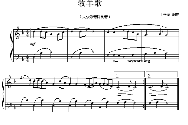 - [钢琴谱,歌谱] 牧羊歌
