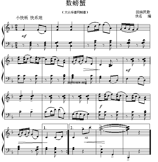民歌钢琴小曲 回族民歌数螃蟹