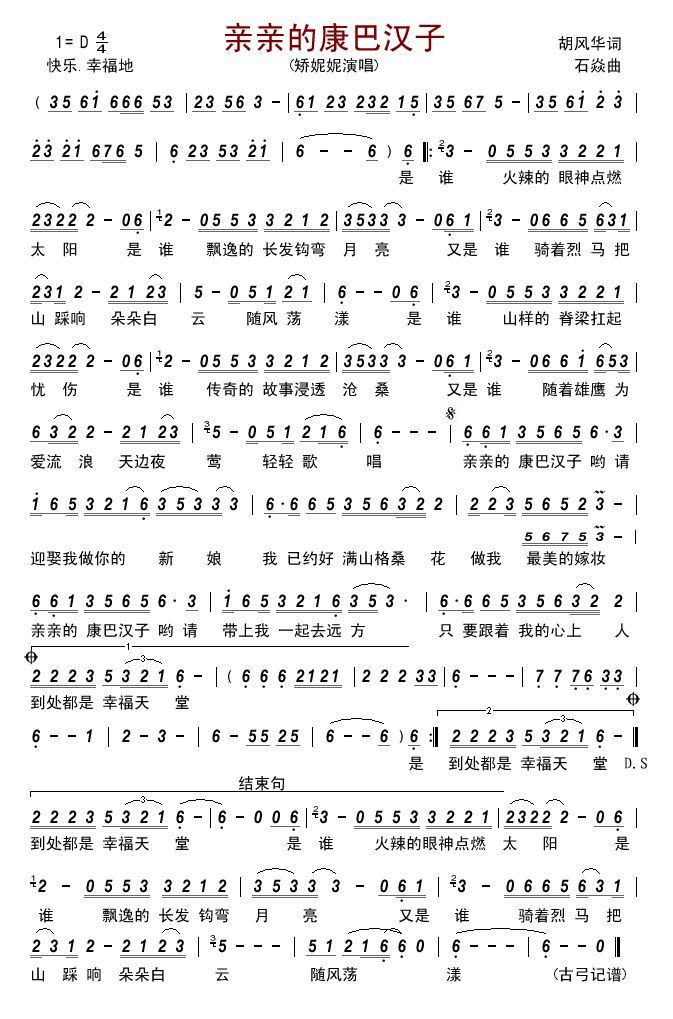 - [歌谱] 美丽的康巴姑娘