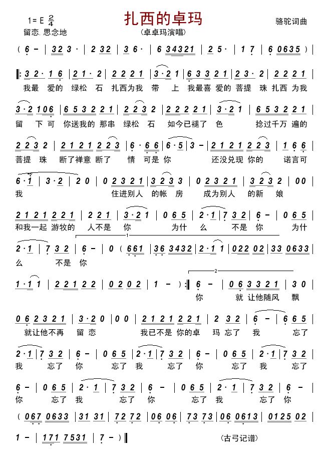 - [歌谱] 扎西的卓玛