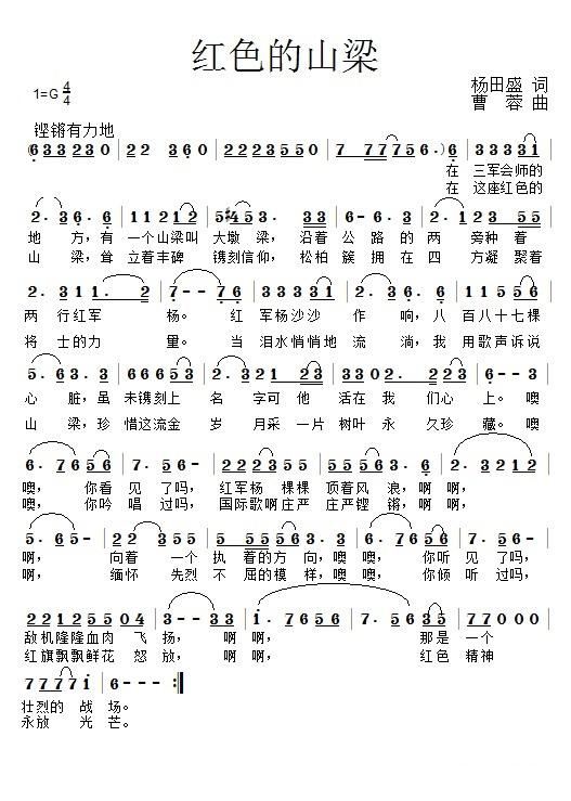 - [歌谱] 看着红太阳悄悄跳下山梁