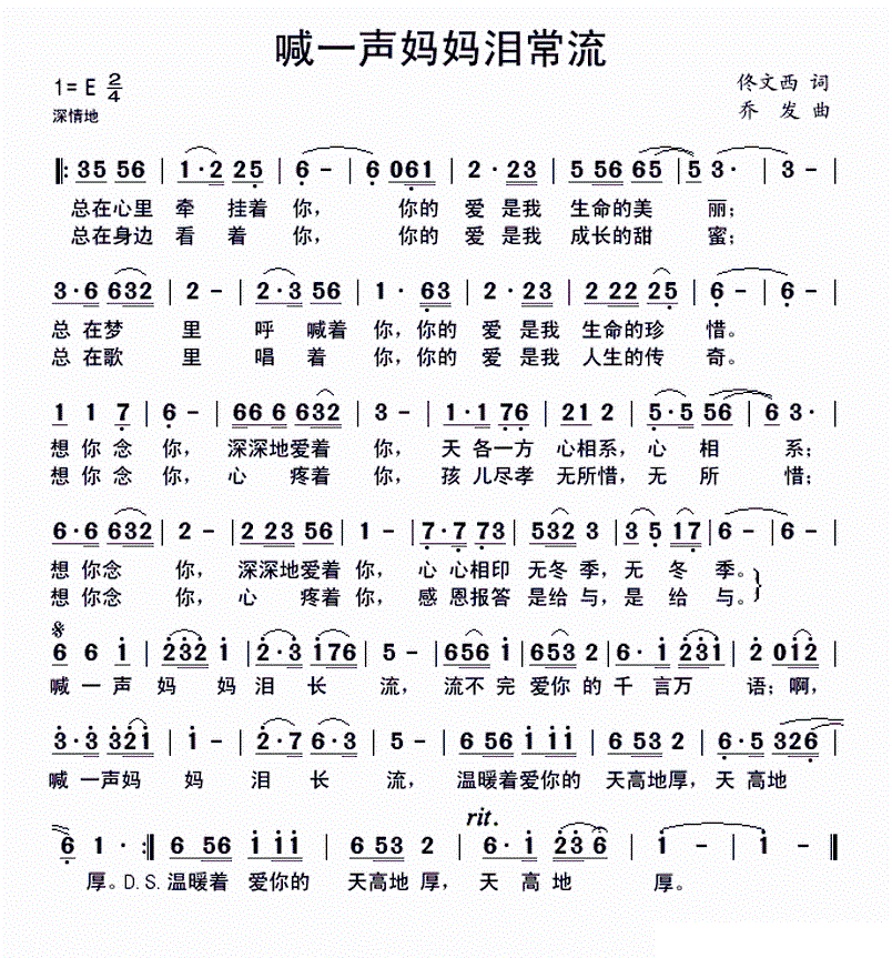 - [歌谱] 江水悠悠泪长流 女声独唱