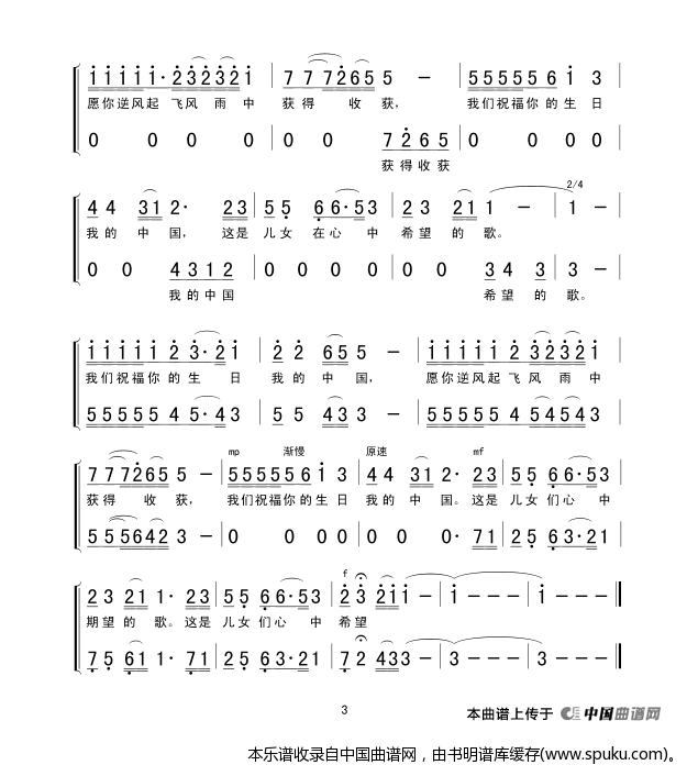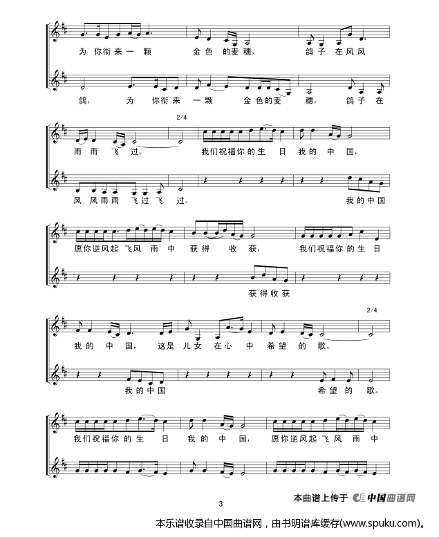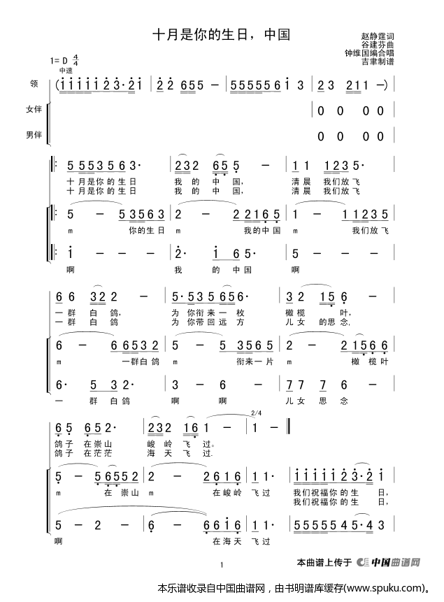 > 十月是你的生日 中国 钟维国编合唱版 合唱谱
