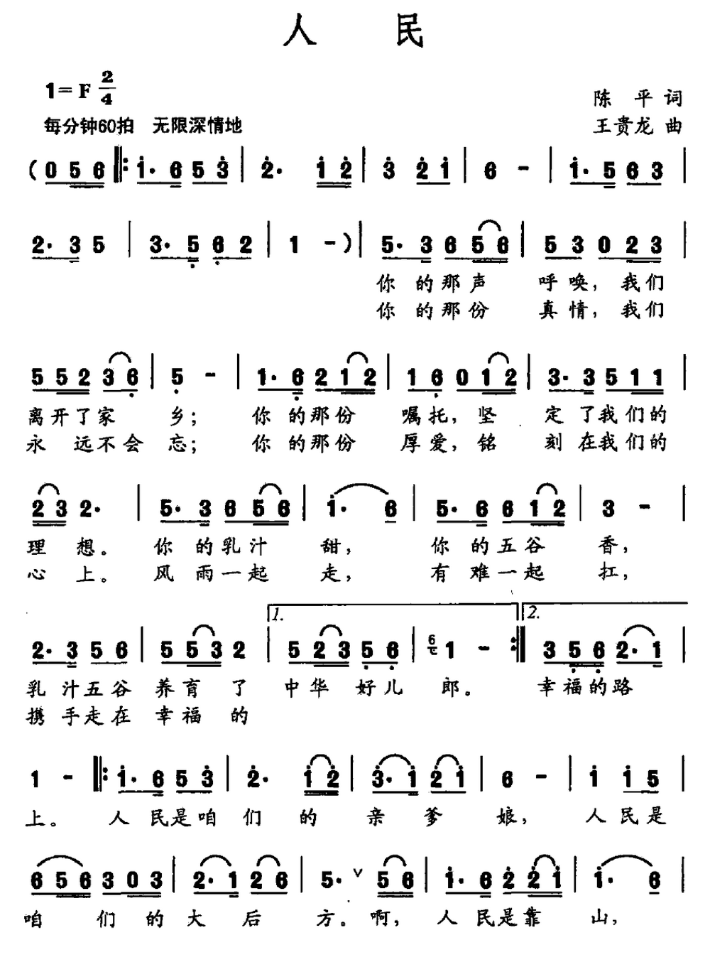 - [歌谱] 人民 陈明华
