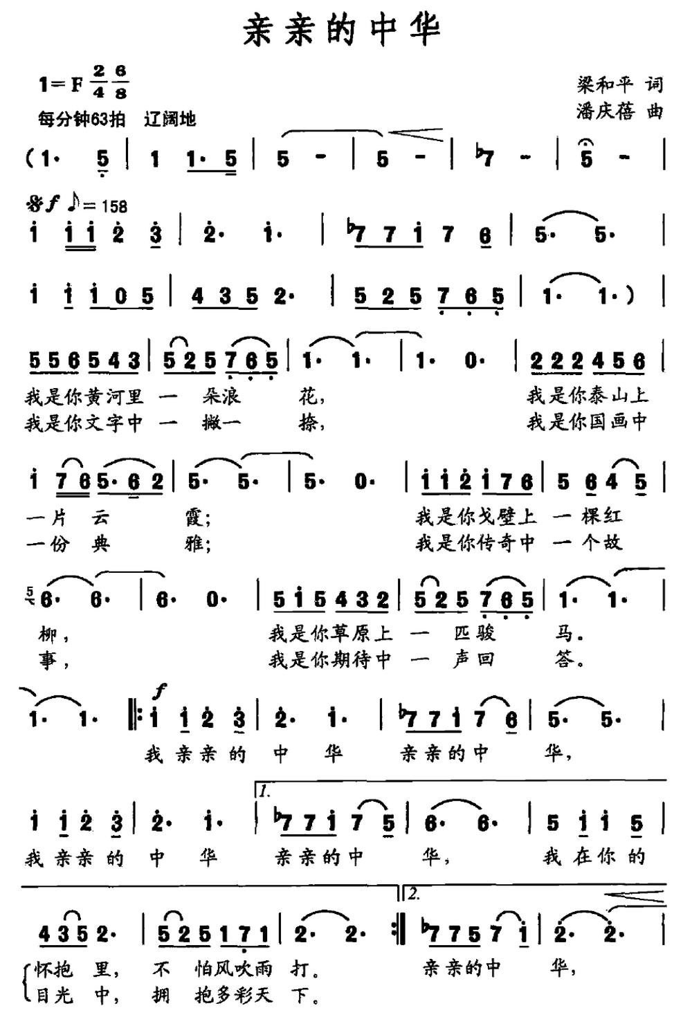 - [歌谱] 我亲亲的中华
