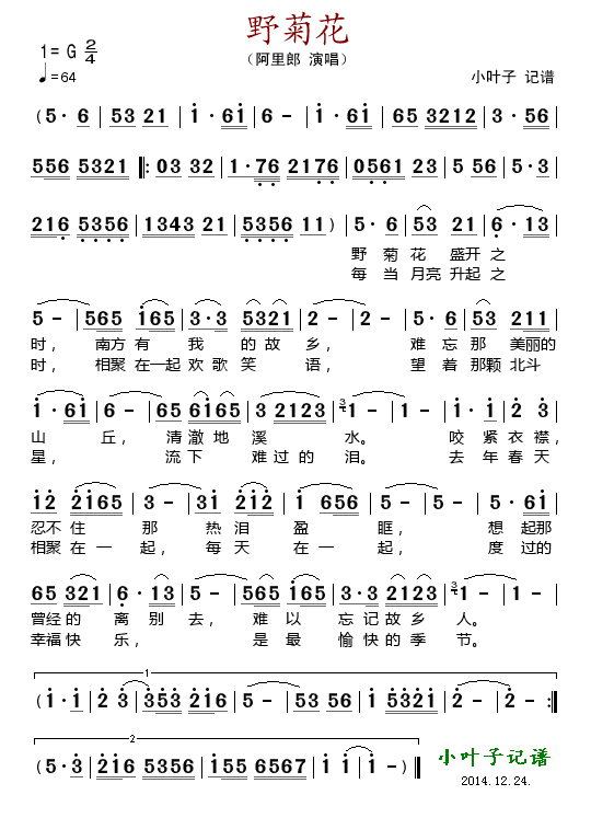 - [电子琴谱,歌谱,古筝谱,葫芦丝谱] 阿里郎