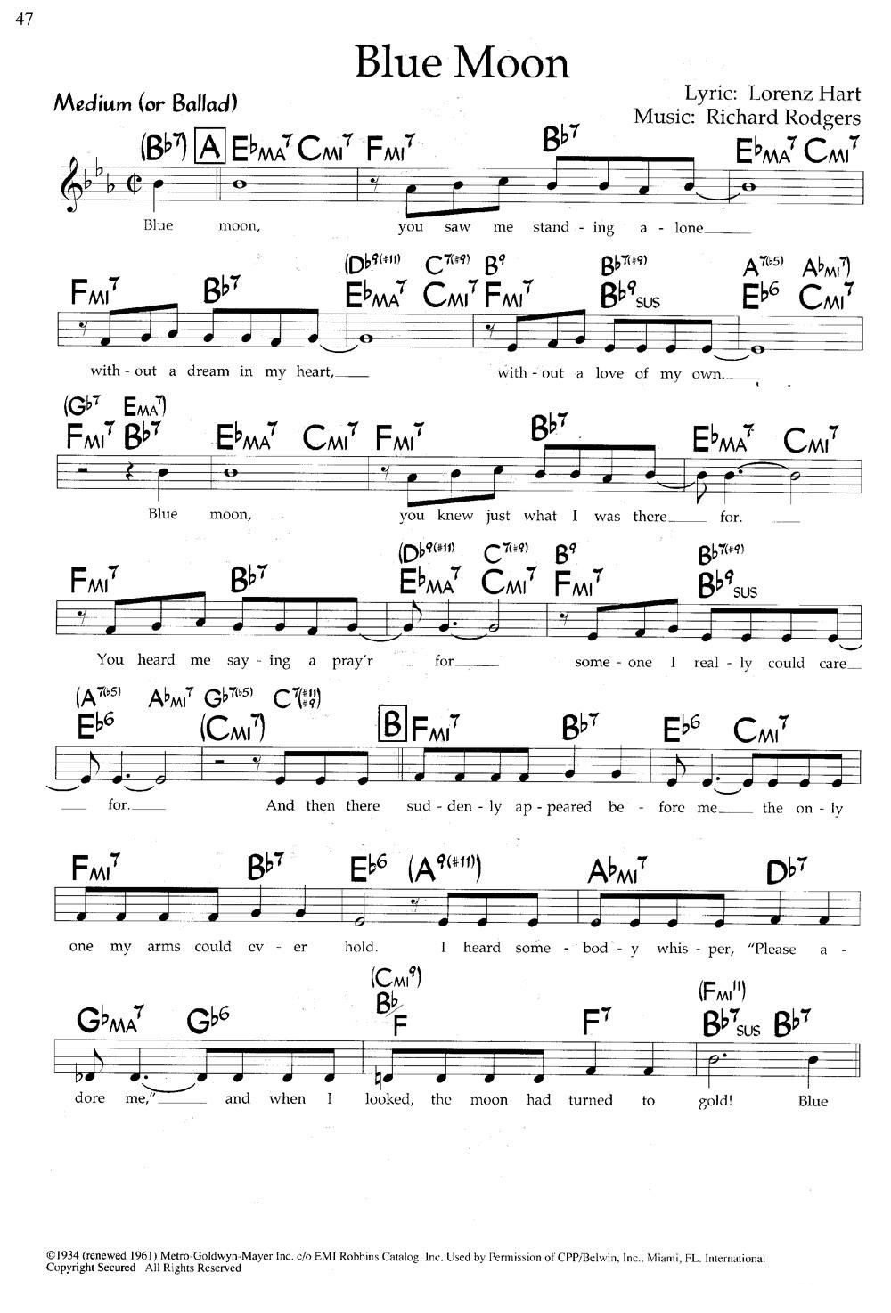 Blue Moon 带和弦