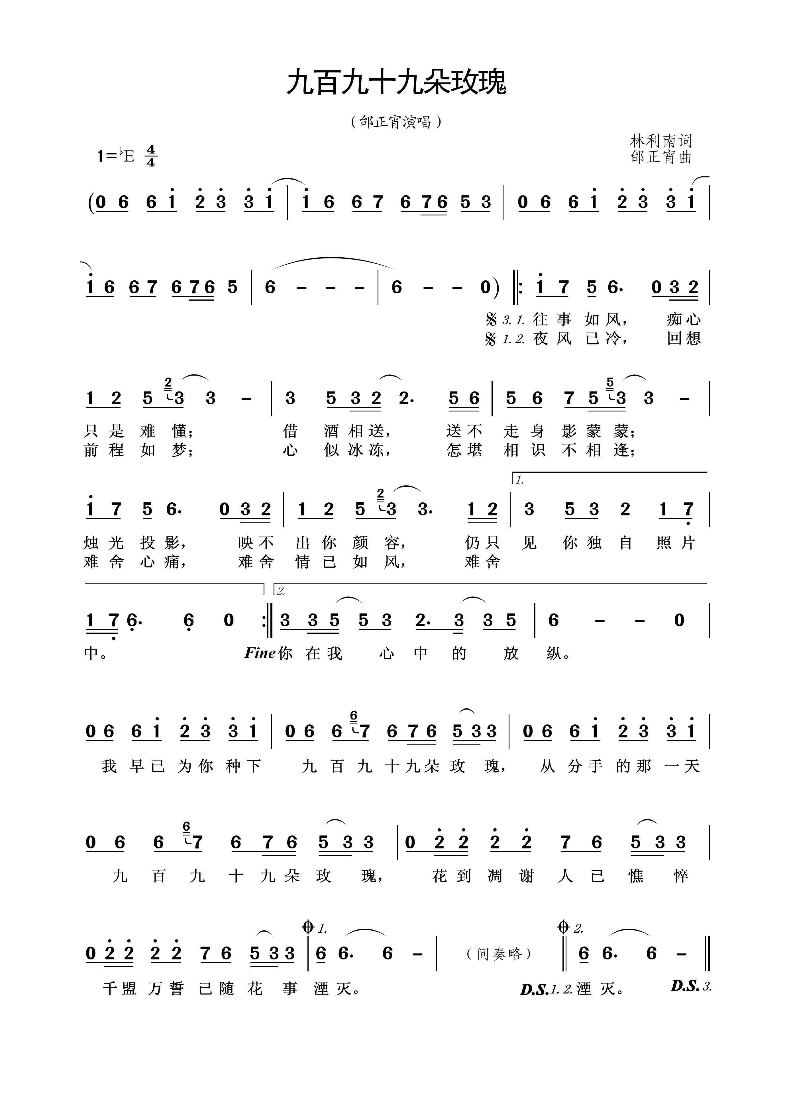 九百九十九朵玫瑰 郭伟湘配和弦版