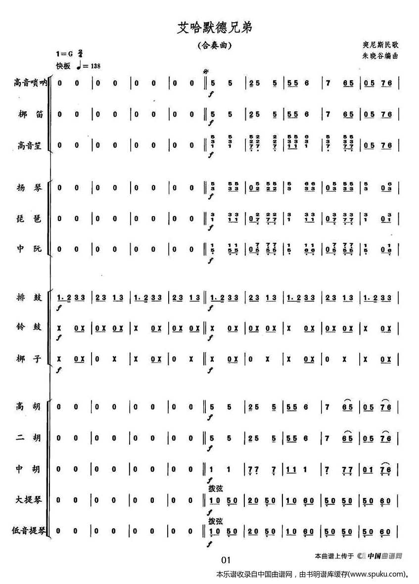 > 艾哈默德兄弟 突尼斯民歌 合奏 乐器谱