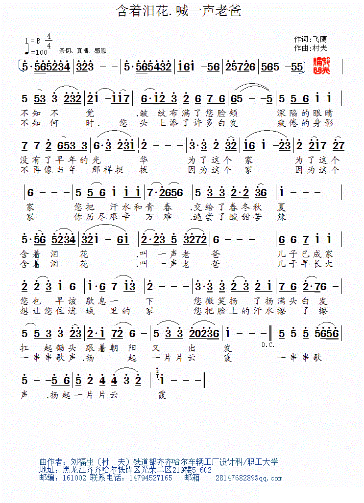 - [歌谱] 含着泪花喊一声老爸