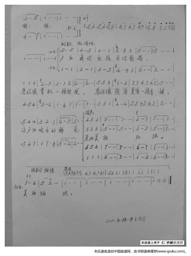 - [歌谱] 夕阳恋着黄河 混声合唱