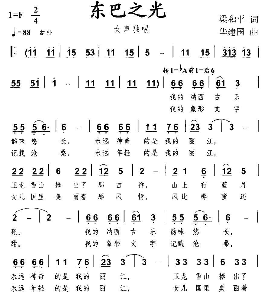 - [歌谱] 东巴之光