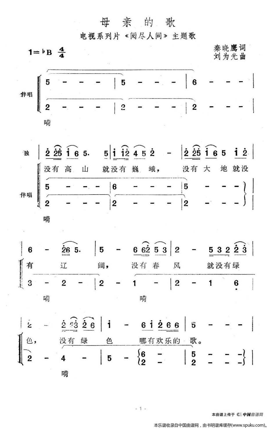 母亲的歌 电视系列片 阅尽人间 主题歌 合唱谱