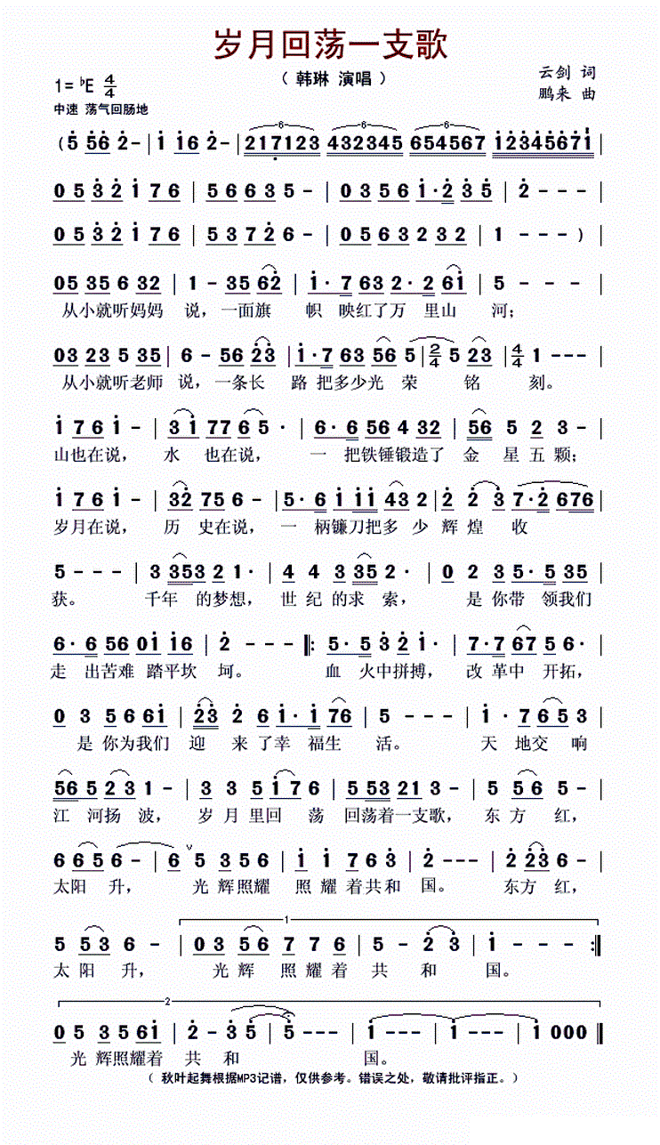 - [歌谱] 岁月