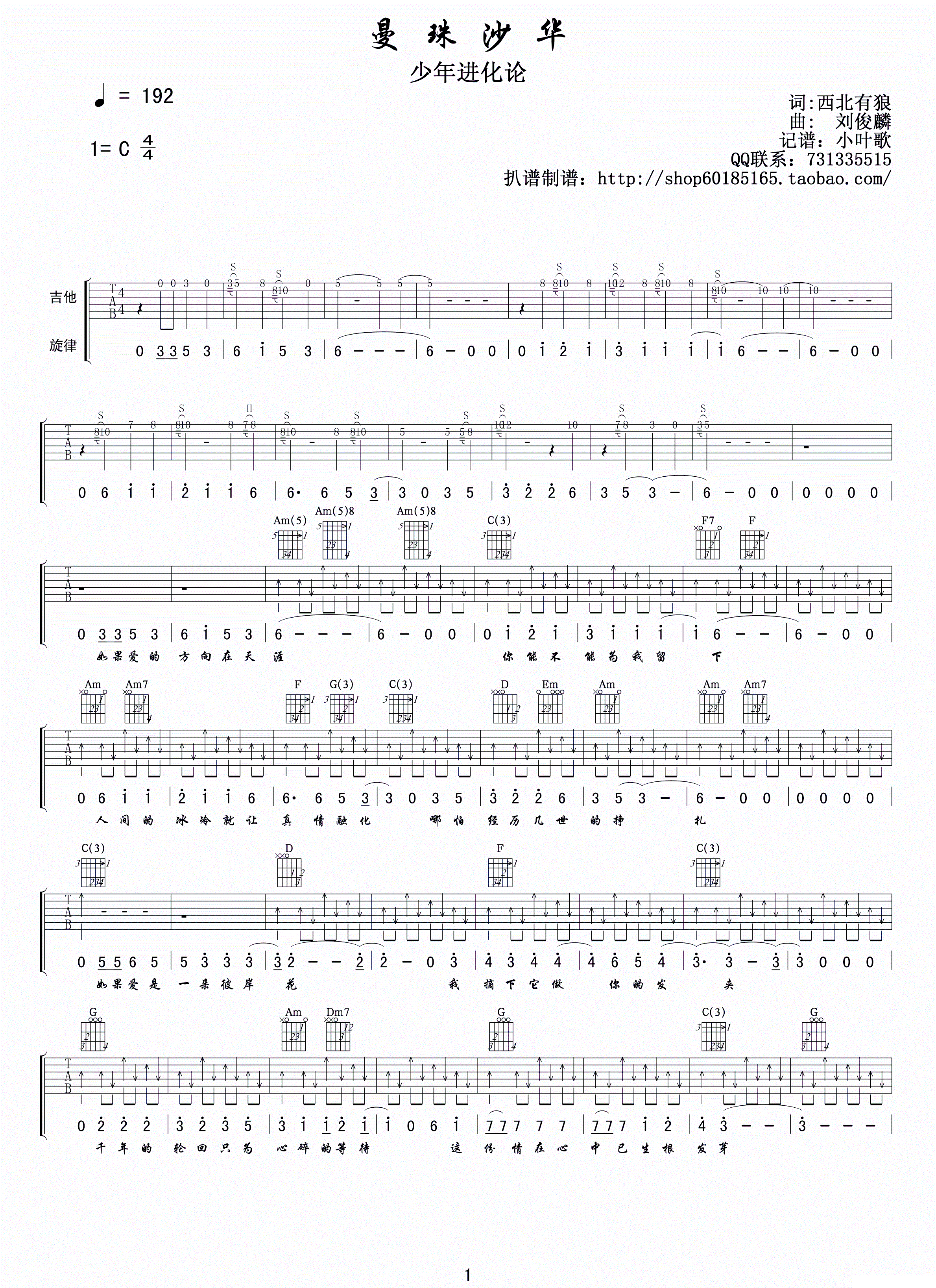 - [歌谱,吉他谱] 曼珠沙华 RTA刘俊麟 现场版 吉他