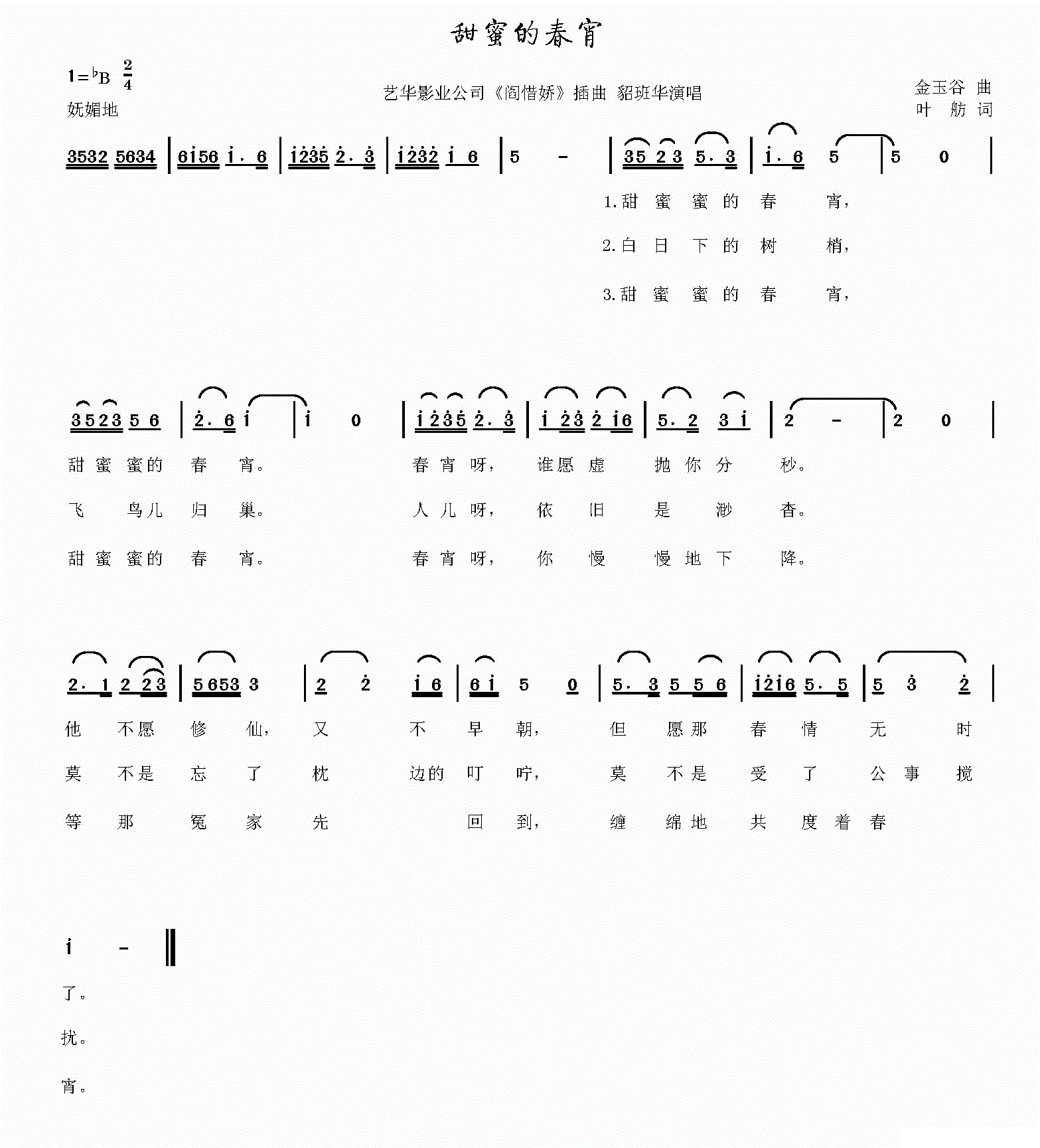 - [歌谱] 甜蜜的小河