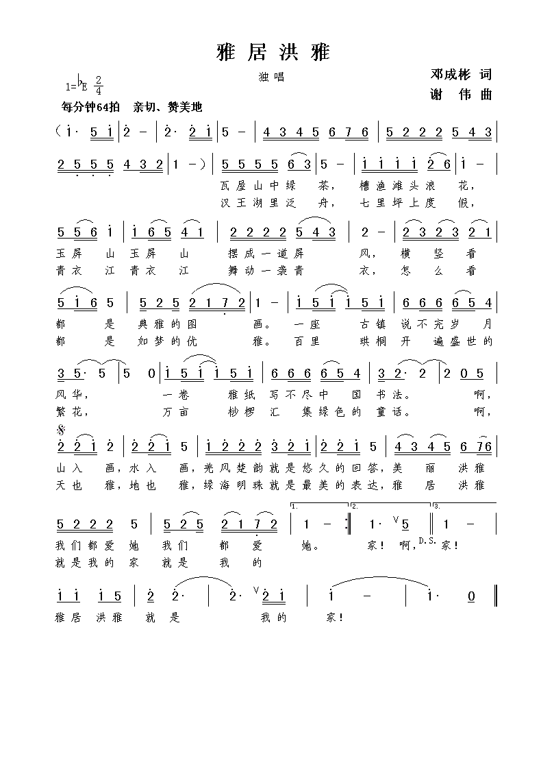 - [歌谱] 雅居洪雅