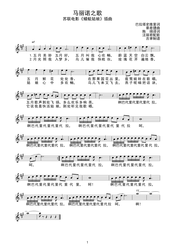 玛丽诺之歌 电影 蜻蜓姑娘 插曲 前苏联