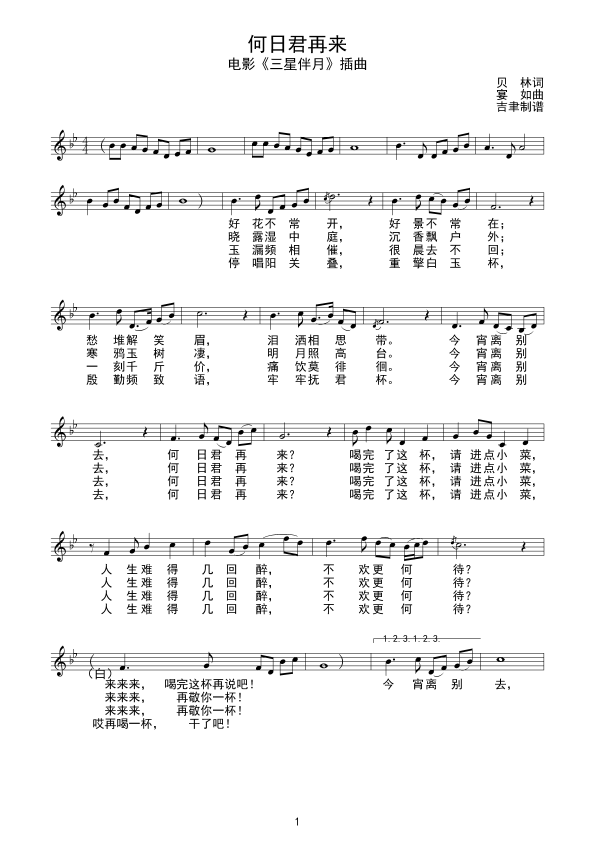 - [单簧管谱,电子琴谱,口琴谱,小号谱] 口琴 何日君再来