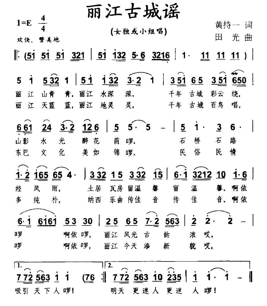 - [歌谱] 古城丽江