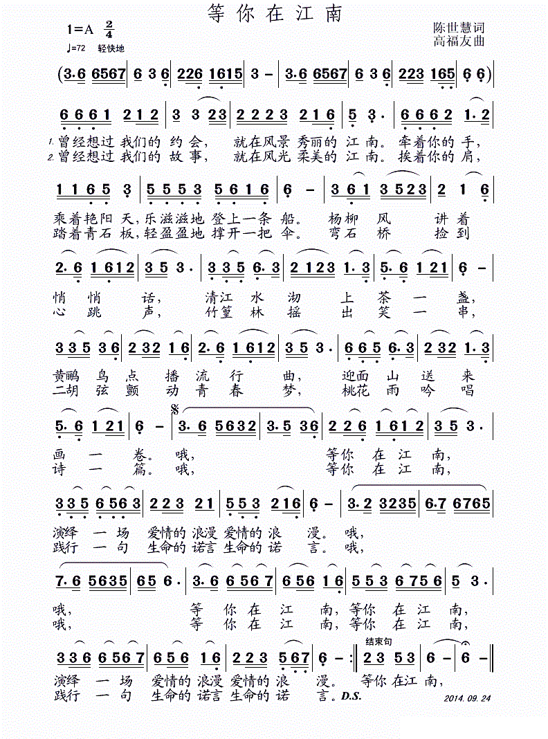 - [歌谱] 你在哪里 电影 上善若水 主题歌